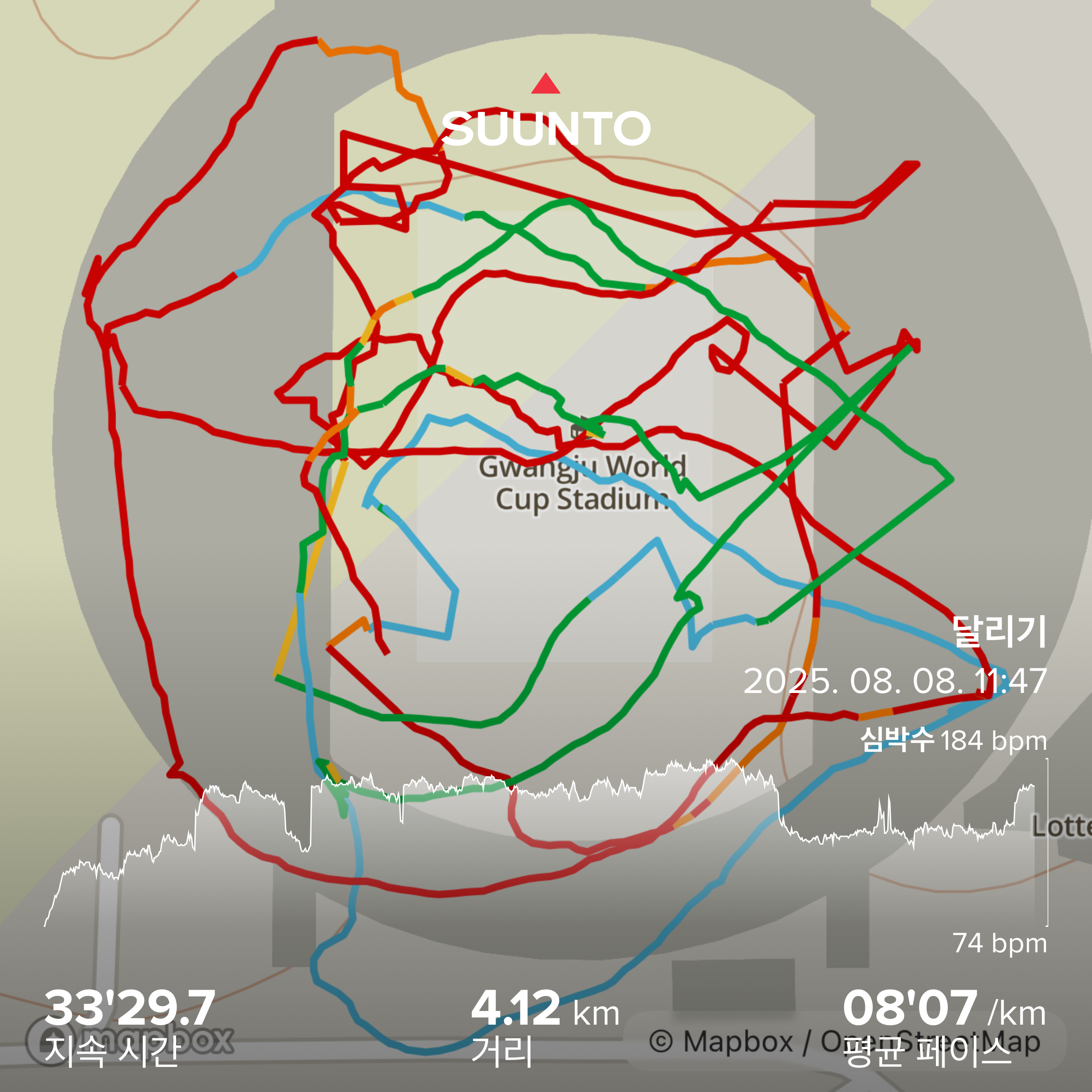 그래서 오늘 러닝 기록은 총 4.8K 정도 됐으며, 심박수는 더운날이라 요동을 쳤습니다.
